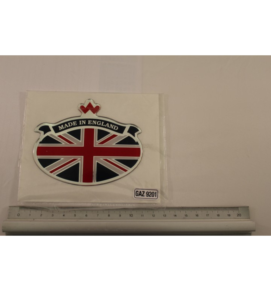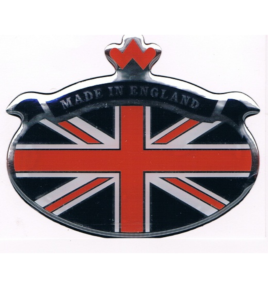 Bellissimo adesivo "Made in England" resinato, con dettagli cromati.