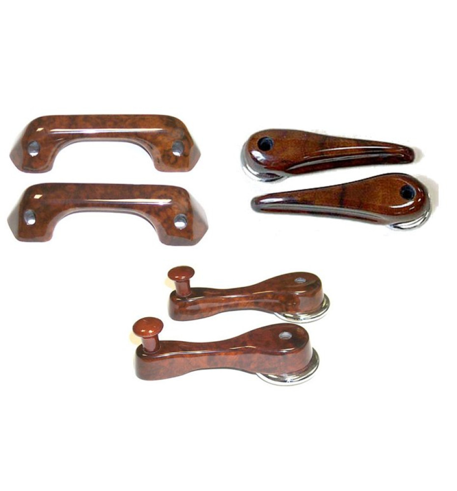 Uno splendido set di maniglie interne portiera, in raffinata radica di noce.