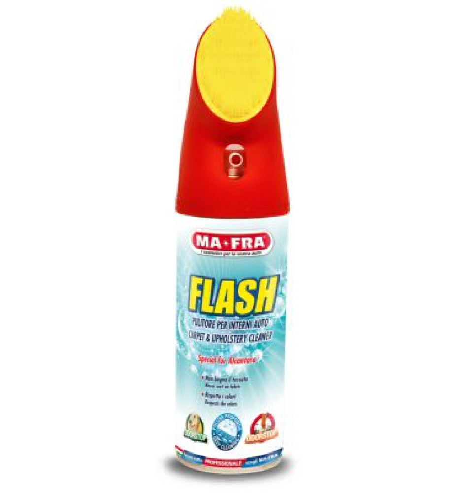 FLASH è ideale per pulire a secco sedili auto, tappetini e finiture in ogni tipo di rivestimento.